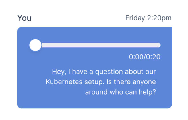 AsyncCall lets you make and listen to voice messages in real time. Speak naturally with your coworkers, while leaving notes for those who are heads down coding. Plus, messages are transcribed for easy reference later.